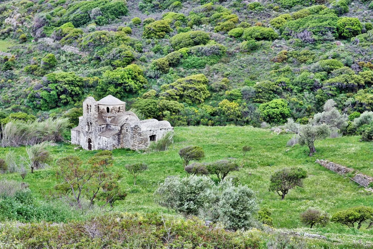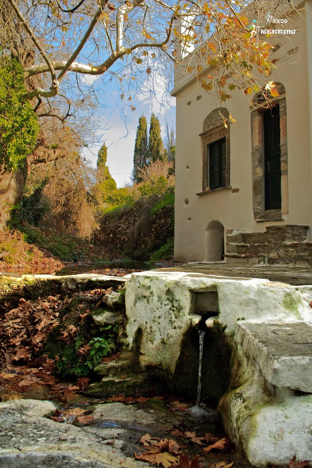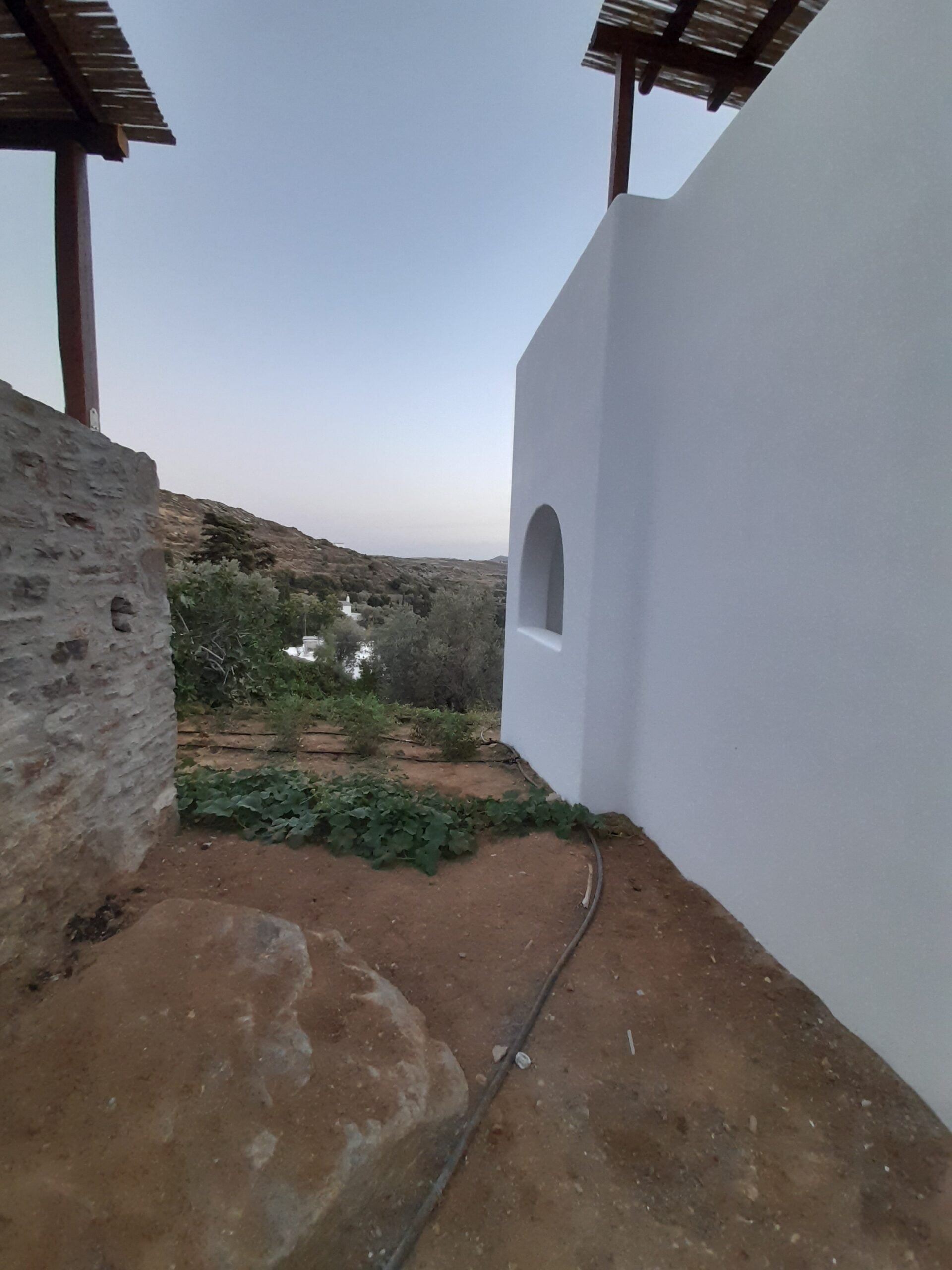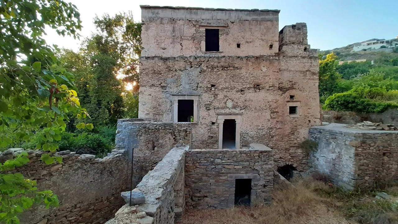 Ktima Drilli is located in Mesi Potamia, at a distance of 8 km from Naxos Town. In the 8 acres of the the lush green estate there is an olive grove, an orchard with fruit trees and a vegetable patch, as well as an old water mill, an old olive press and a small church dedicated to Agia Irini Chrysovalantou.